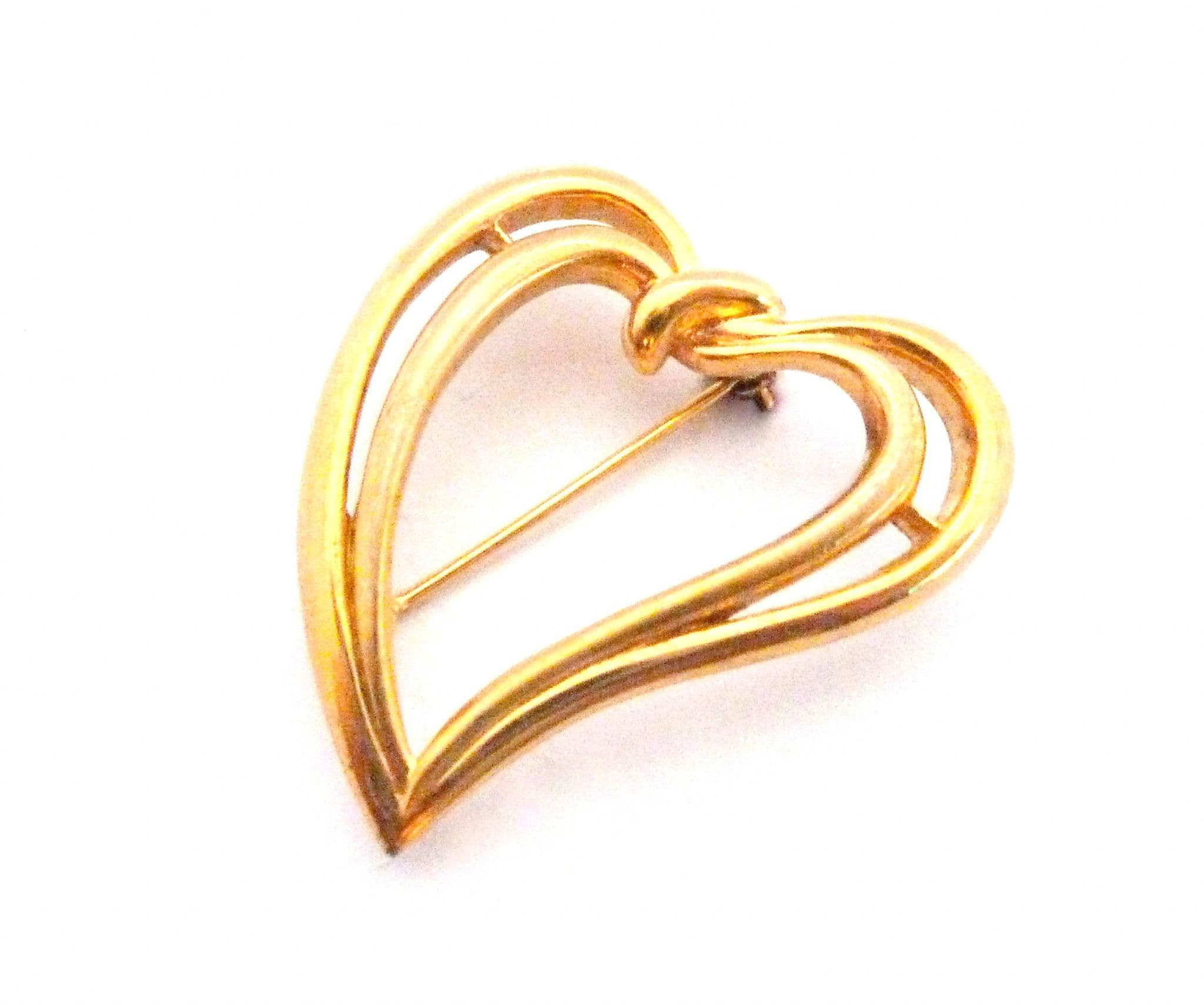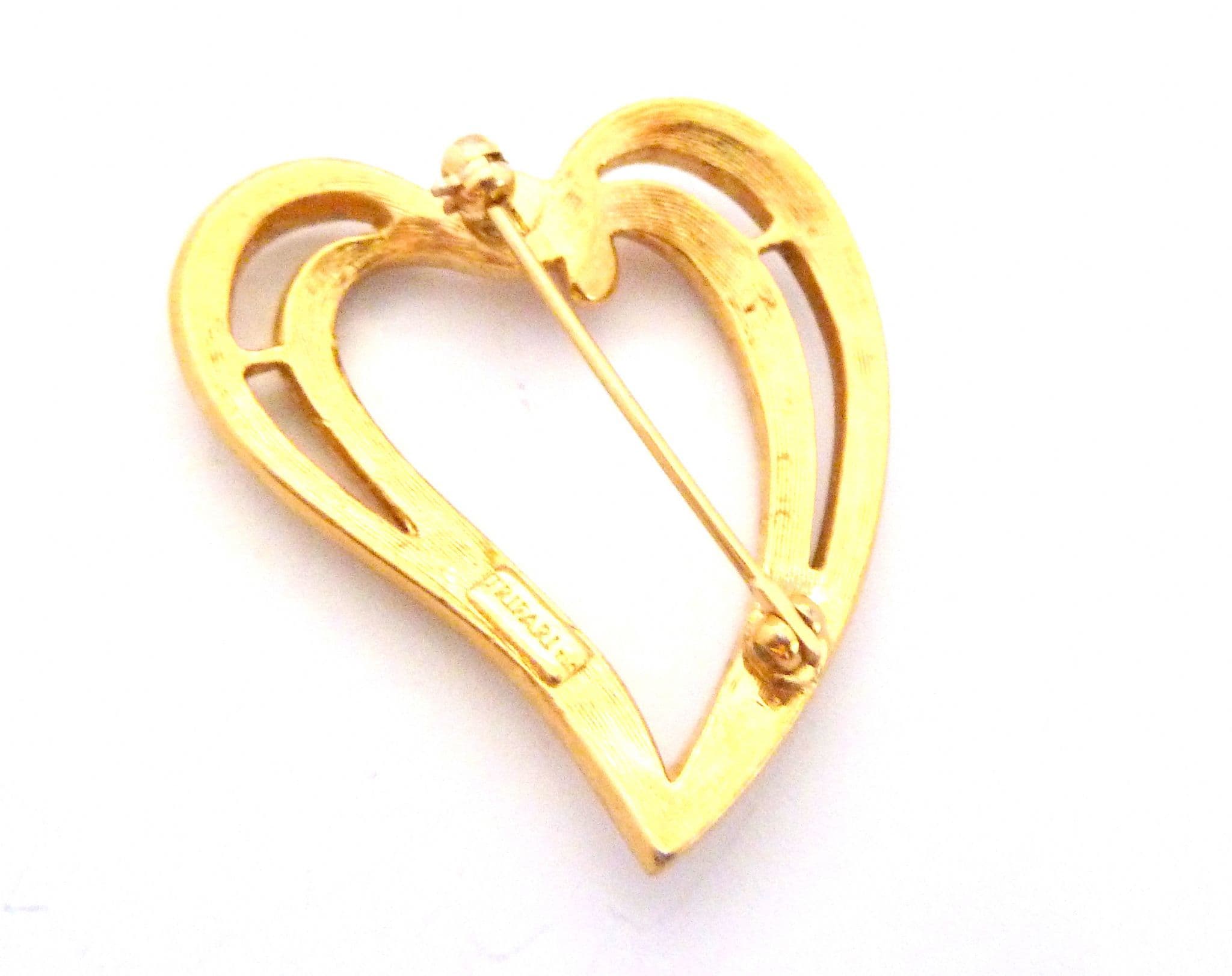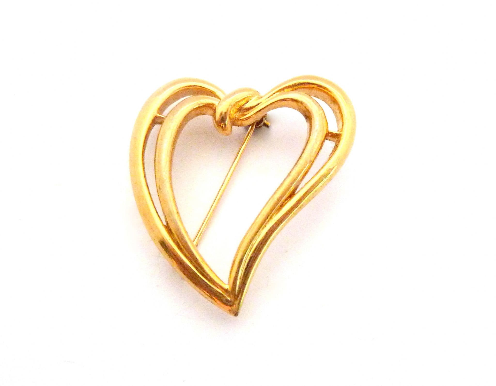 Vintage heart brooch by Trifari. The brooch is formed from polished gold in an open work heart design. Circa 1980's.